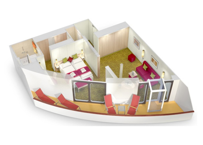 SC - Suite PREMIUM 51 - 55 m² (vrátane balkóna od 15 m²). 8. paluba. Max 4 osoby. Cenový model Premium + výhody Suite. 3 710 € 1 855 € za osobu